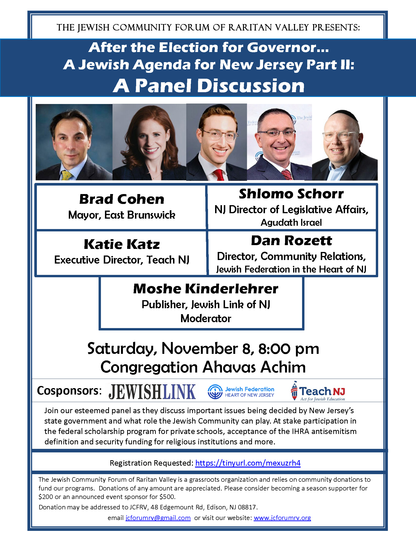 November 8, 2025: After the Election for Governor: A Jewish Agenda for NJ Part II